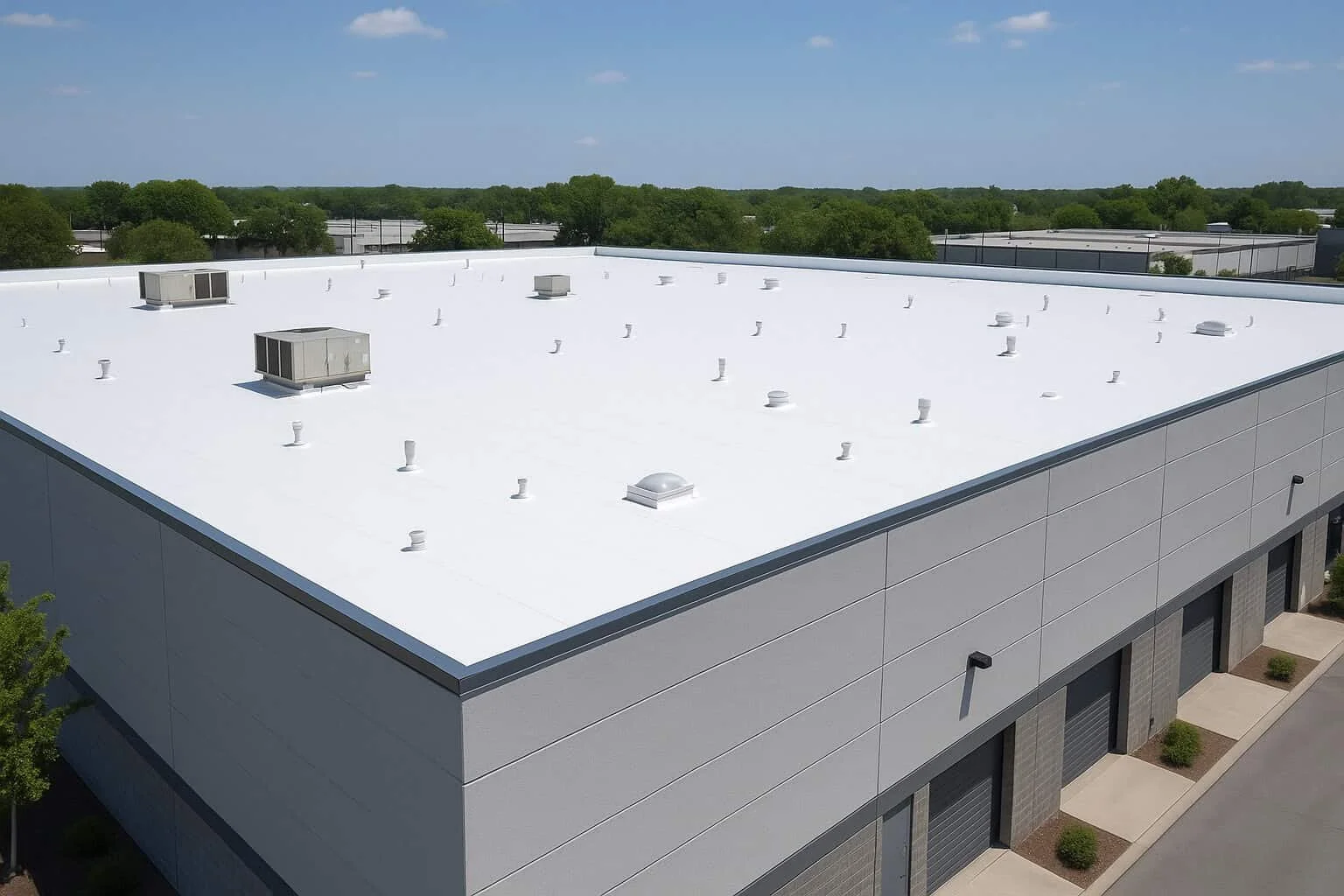 Energy-efficient flat roofing for commercial buildings. UV-resistant, waterproof, and low-maintenance with long-term durability.